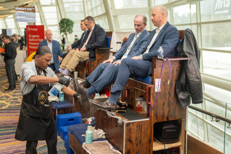 The shoe shine station is always a major draw for Annual Conference attendees.
